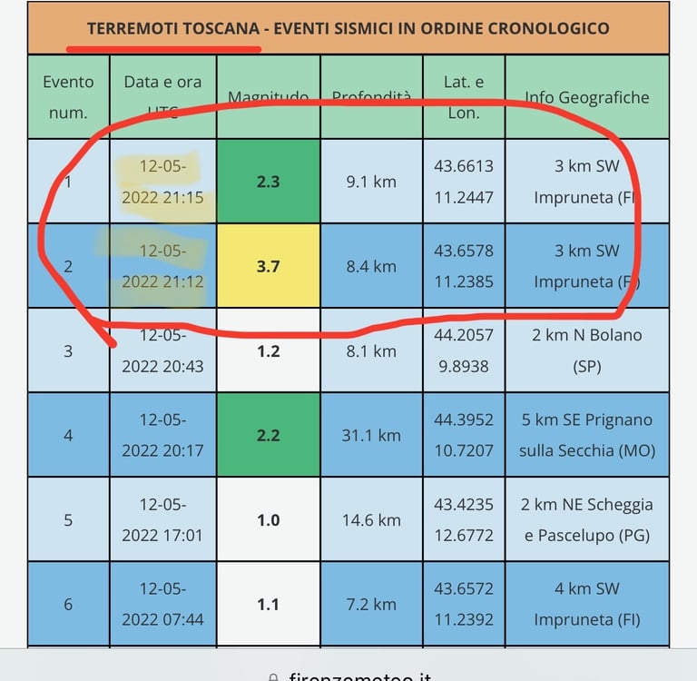 Não demorou muito pra internet nos dar a resposta: dois tremores de terra na região de Impruneta, a uns 20 km de Florença. Pensa na nossa cara? Era real! Passado o susto, e depois de ter certeza de que não tinha rolado nada grave – só umas tremidinhas –, a gente caiu na risada. Muita risada, viu?